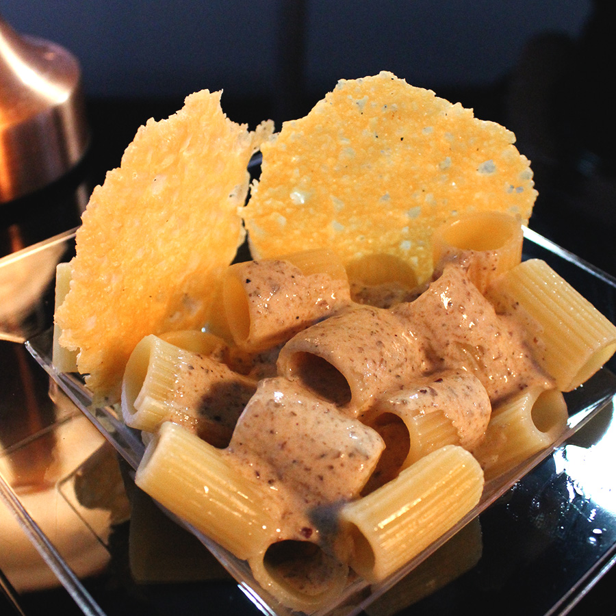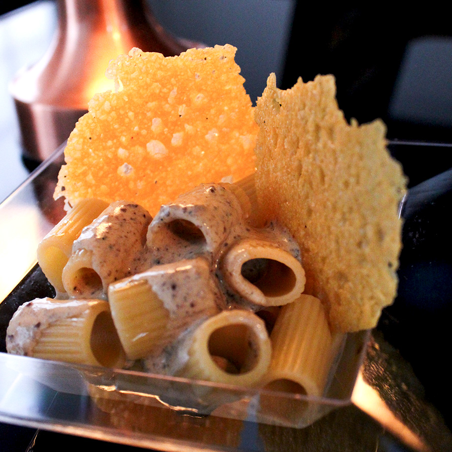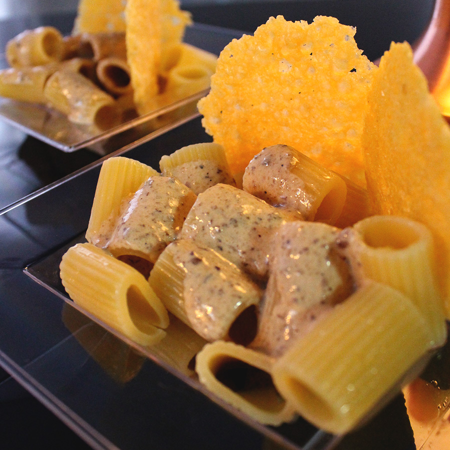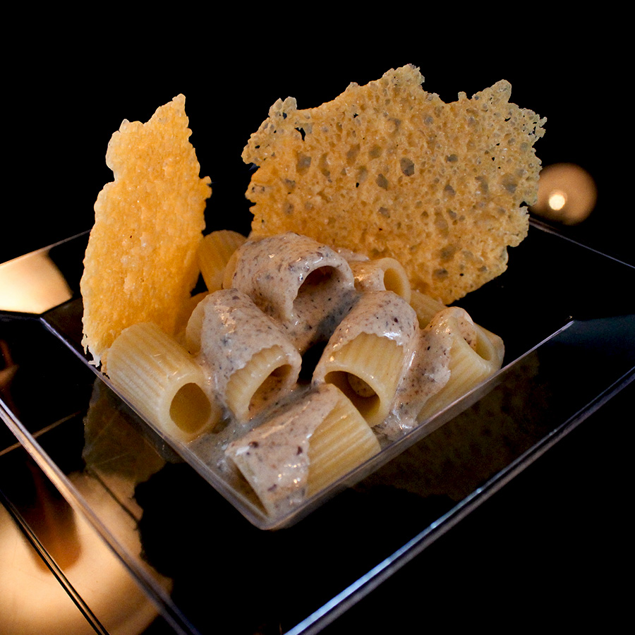 Nuestra salsa de 4 setas con dos galletas de puro grana padano, pasta corta.