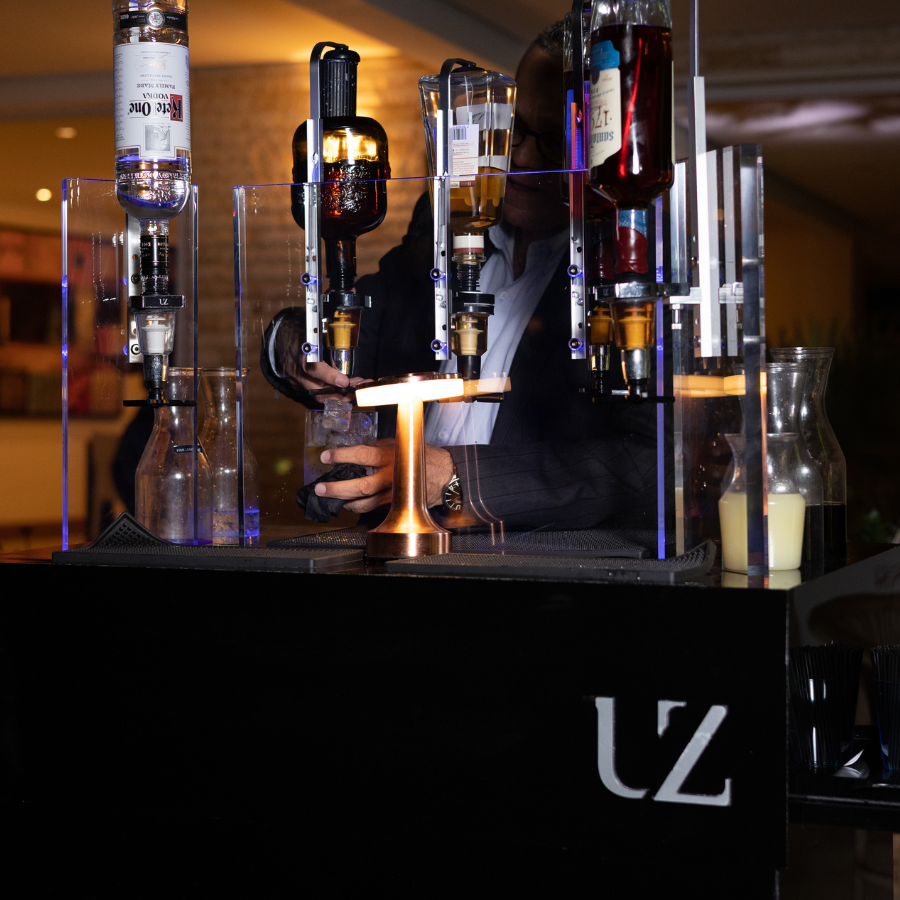 Transforma la dinámica tradicional del bar en eventos. Nuestro AIR BAR es una estación exclusiva y envolvente que eleva la forma de servir y disfrutar tragos. Las botellas se presentan como si flotaran en aire.