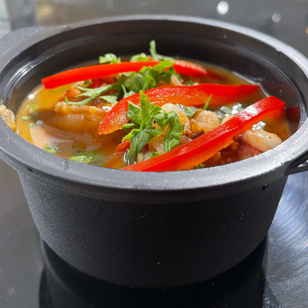 Cargado de mariscos premium: camarones, vieiras, calamares y mejillones. Presentación exclusiva en “ollita” con tapa.
