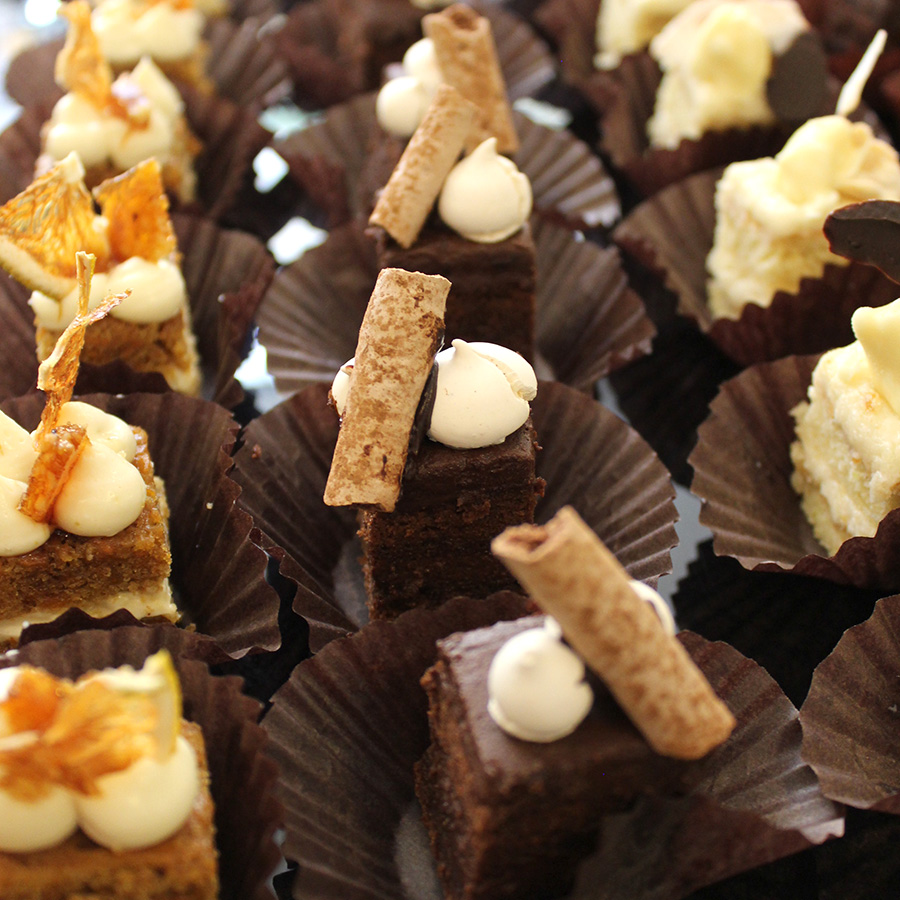 Mix de postres UZ, Brownie, Coco plus, Carrot Cake, Devil's Cake, Pavlova y alfajores.